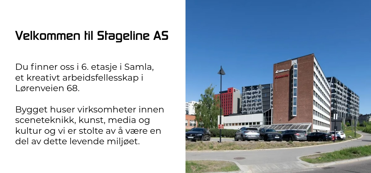 Inngangen til bygget ligger mot Lørenveien. Det er ingen resepsjon, bare gå inn hoveddøren, og ta heis eller trapp til 6. etasje. Du finner oss merket som Stageline AS.
